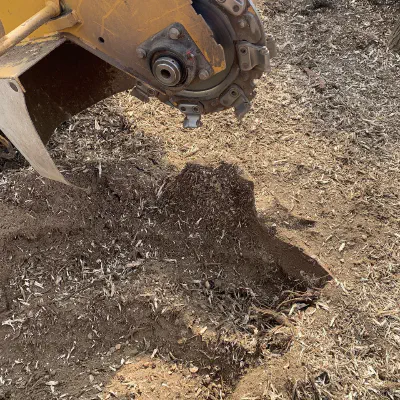 Mithilfe der Stubbenfräse (auch unter den Namen Baumstumpfräse, Stockfräse oder Wurzelstockfräse bekannt) kann der Stumpf bis zu einer Tiefe von 60 cm unter der Erdoberkante zu Spänen verarbeitet werden. Dieses Erd-Späne-Gemisch kann nun vor Ort verbleiben oder entnommen und durch Mutterboden ersetzt werden.